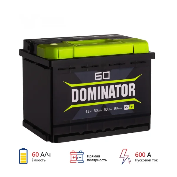 Представляем автомобильный Аккумулятор DOMINATOR 60Ah euro ССА600, страна производитель которого: Россия. Этот аккумулятор обладает ёмкостью 60 А/ч и пусковым током 600 А, что обеспечивает надежный запуск автомобиля.