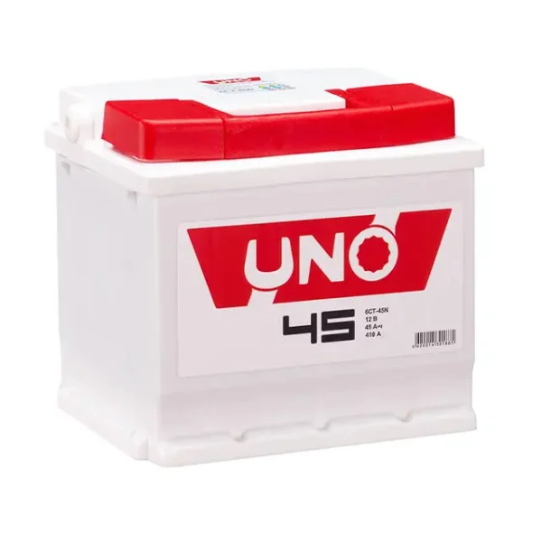 Представляем автомобильный Аккумулятор UNO 45Ah euro EN410, страна производитель которого: Россия. Этот аккумулятор обладает ёмкостью 45 А/ч и пусковым током 410 А, что обеспечивает надежный запуск автомобиля.
