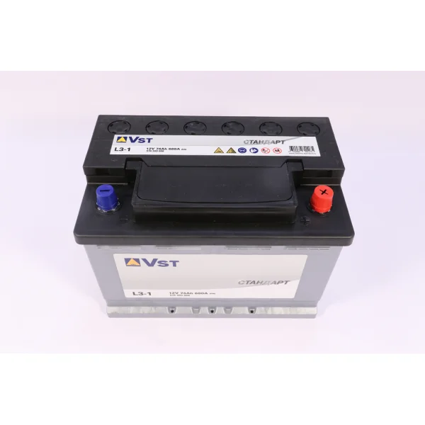 Представляем автомобильный Аккумулятор VST Стандарт 74Ah euro EN680, страна производитель которого: Россия. Этот аккумулятор обладает ёмкостью 74 А/ч и пусковым током 680 А, что обеспечивает надежный запуск автомобиля.