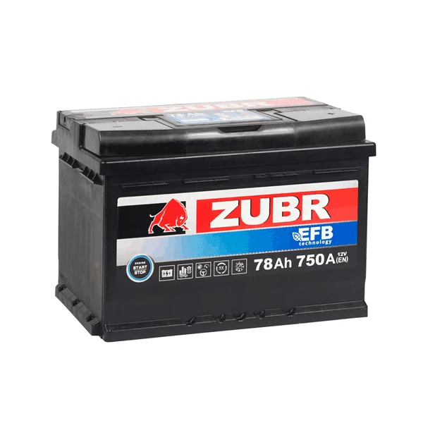 Представляем автомобильный Аккумулятор ZUBR EFB 78Ah прямой EN750, страна производитель которого: Россия. Этот аккумулятор обладает ёмкостью 78 А/ч и пусковым током 750 А, что обеспечивает надежный запуск автомобиля.